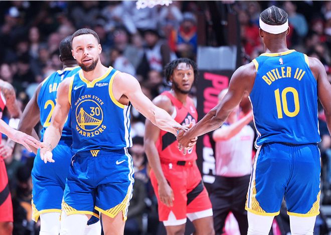 勇士:库里4记三分39分3篮板4助攻,巴特勒19分6篮板5助攻,追梦4记三分21分7助攻,理查德10分7篮板5抢断,波杰姆斯基10分。