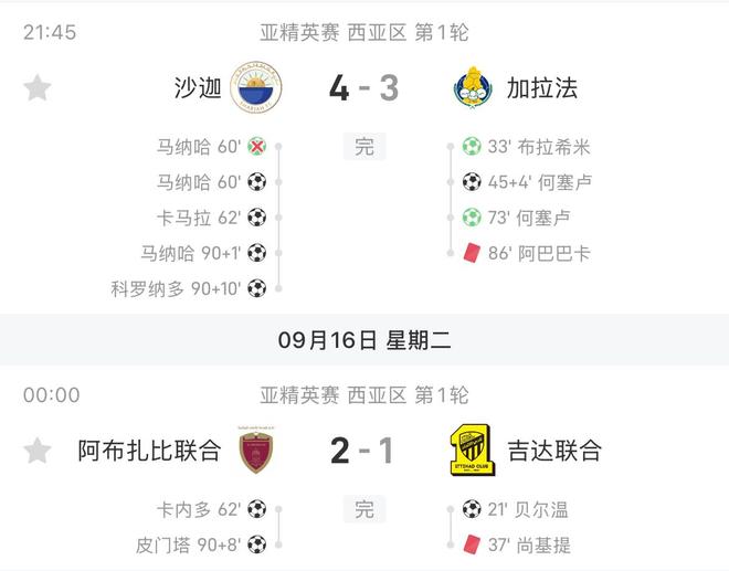 复制粘贴?亚冠精英赛加纳法与吉达联合均十人作战遭主队绝杀